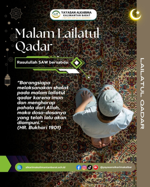 "Barangsiapa melaksanakan shalat pada malam Lailatul Qadar karena iman dan mengharap pahala dari Allah, maka dosa-dosanya yang telah lalu akan diampuni."
