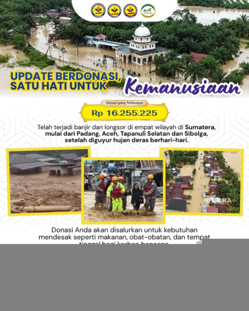 Hingga laporan ini disampaikan, total donasi yang berhasil dihimpun mencapai Rp 16.255.225. Dana tersebut merupakan amanah dari para donatur yang peduli terhadap kondisi saudara-saudara kita di wilayah terdampak, di antaranya Padang, Aceh, Tapanuli Selatan, dan Sibolga, yang mengalami bencana akibat curah hujan tinggi secara terus-menerus.