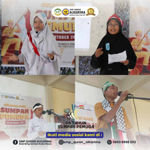 Dalam rangka memperingati Hari Sumpah Pemuda, SMP Quran Alkarima di Kubu Raya menggelar lomba pidato dengan tema Pemuda Berkarakter Qurani, Wujudkan Generasi Cerdas dan Berakhlak Mulia. Kegiatan ini bertujuan untuk mengembangkan potensi siswa dalam berkomunikasi serta memperkuat rasa cinta tanah air dan nilai-nilai kebangsaan sesuai dengan semangat Sumpah Pemuda.