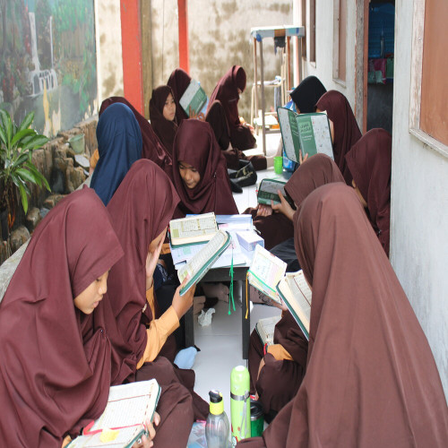 Halaqoh Quran diadakan setiap pagi dengan suasana yang tenang dan penuh ketulusan. Di sini, para siswa bersama-sama mengulang hafalan, memperbaiki tajwid, dan mendalami tafsir Al-Quran. Melalui halaqoh, siswa belajar mengintegrasikan nilai-nilai Al-Quran ke dalam kehidupan sehari-hari. Mereka dibimbing oleh guru-guru yang tidak hanya mumpuni secara akademik, tetapi juga memahami cara menginspirasi siswa untuk menjadikan Al-Quran sebagai pedoman hidup.