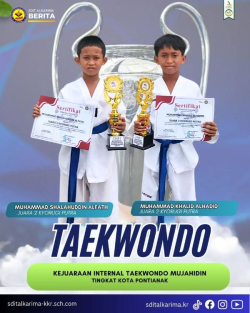 Kubu Raya, Oktober 2025 — Dua siswa SDIT Alkarima kembali menorehkan prestasi gemilang dalam ajang Kejuaraan Internal Taekwondo Mujahidin 2025 Tingkat Kota Pontianak.