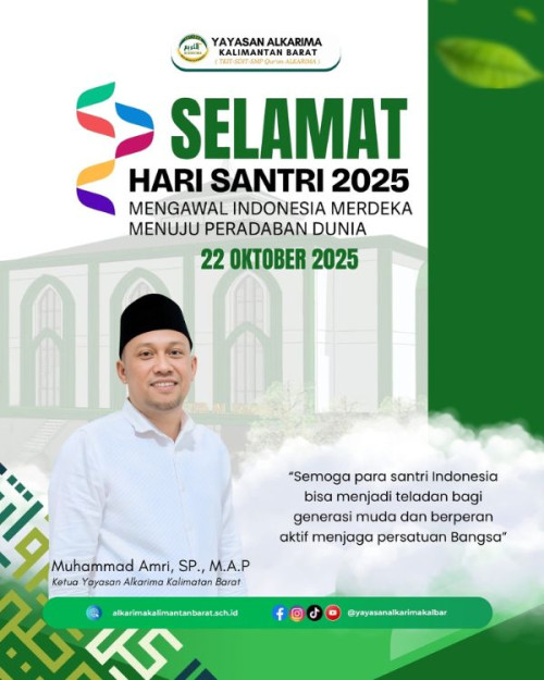 Melalui peringatan Hari Santri 2025 ini, Yayasan Alkarima Kalimantan Barat mengajak seluruh tholib dan tholibah untuk terus meneladani semangat para santri terdahulu—berilmu, berakhlak, dan berkontribusi untuk kemajuan Indonesia menuju peradaban dunia.